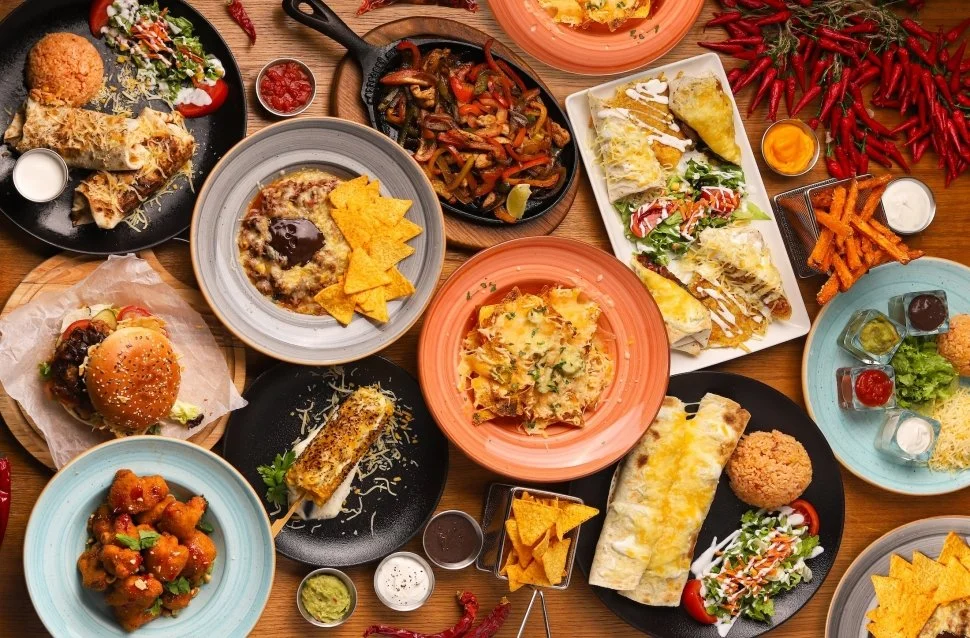 Calavera tex-mex ebéd fogásai és desszertjei közül a következőket kóstoltam: Jalapeño poppers, Főtt kukorica, Rákos–mangós saláta, Mangó krémleves, Csirkés fajita, Pulled pork burger, Chili con carne, Marhás burrito, Maracuja mousse, Mexikói chilis brownie, Tres leches torta, Churros válogatás.